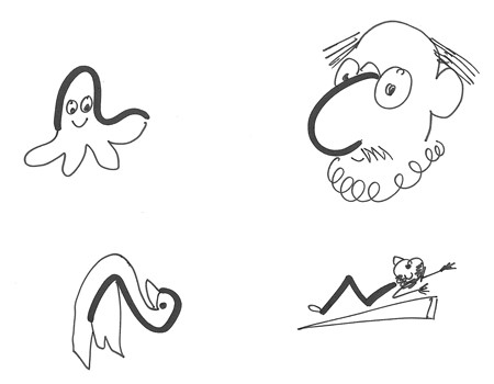 Дорисовки. Каждый рисует на листе какую-нибудь закорючку, потом все меняются листочками и другим цветом дорисовывают картинку так, чтобы получилось что-то осмысленное.