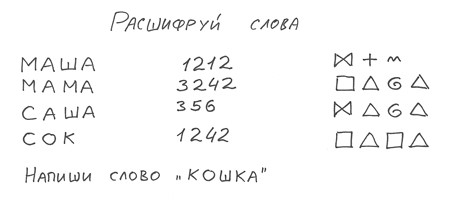 Зашифрованные письма и удивительные сказки. Когда дети уже умеют писать и читать, им нравится расшифровывать секретные записки, где для каждой буквы есть свое обозначение — например, цифра или маленькая картинка.
